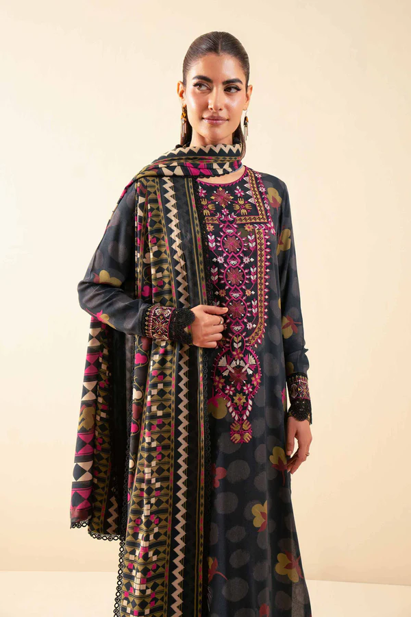 Fashion that carries a legacy with this printed embroidered three-piece from the latest unstitched Winter Collection.